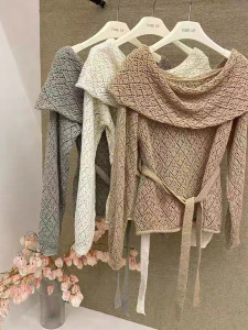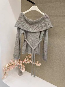 2025秋季新款慵懒温柔气质露肩高级感一字领小女人针织衫配腰绳
