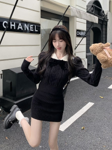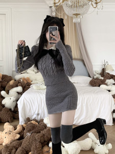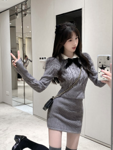 秋冬韩系学院风针织套装裙蝴蝶结毛衣上衣半身裙甜辣两件套大学生