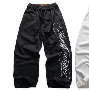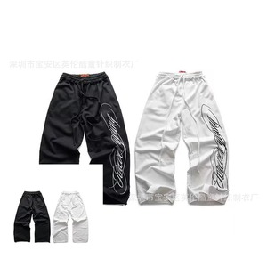 跨境2025新款流行英文线稿设计男女阔腿裤裤子侧边印花系列长裤