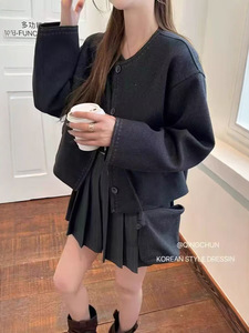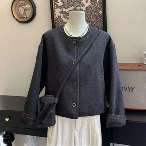 小香风短款毛呢外套女2025新款秋冬爆款小个子圆领明线配包包上衣