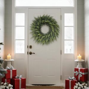 跨境新款60cm大直径圣诞花环人造大花环圣诞真实触感人造绿色装饰