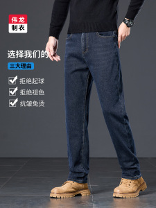 棉弹牛仔裤男士水洗耐磨抗皱休闲直筒长裤秋季新款潮牌男装裤子