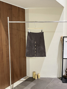 初打十三行秋冬新款复古麂皮绒开衩中长高腰百搭钉扣半裙女BQA190