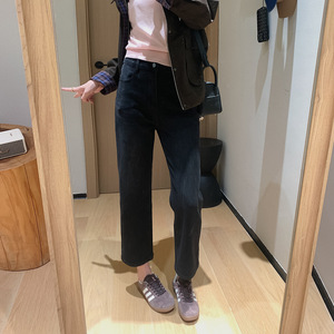 大叮自制W标法棍裤!早秋四面弹石洗绣线压胶直筒裤显瘦九分牛仔裤