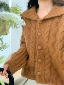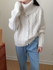 韩国chic复古高领麻花毛衣外套女秋冬季新款宽松慵懒风针织开衫厚