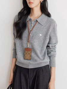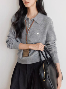 秋季羊毛针织衫女2025新款长袖polo领宽松气质学院风内搭套头毛衣
