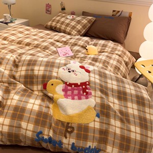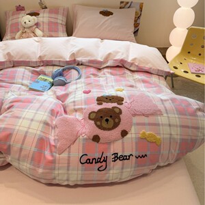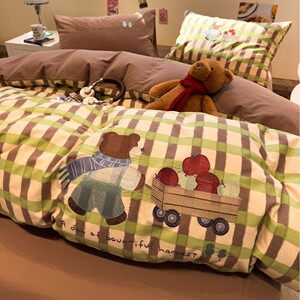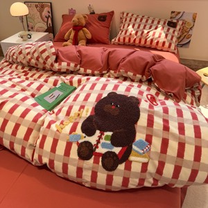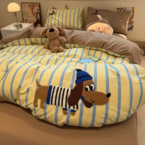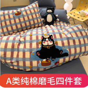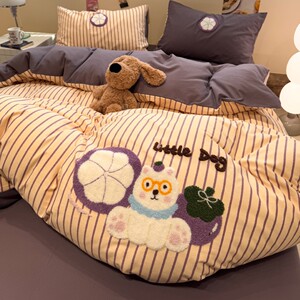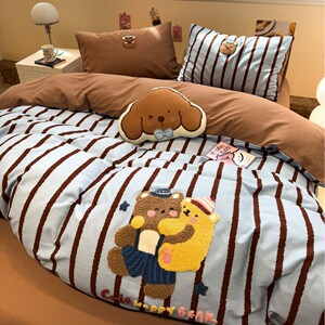 A类全棉四件套纯棉磨毛原创毛巾绣卡通毛巾绣三件套被套床单批发