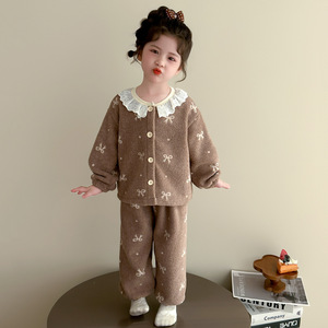 女童法兰绒睡衣秋冬2025新款女宝宝公主保暖珊瑚绒儿童冬季家居服