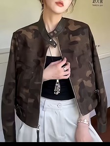 美拉德麂皮绒立领休闲夹克外套女秋季2025新款小个子长袖短款上衣
