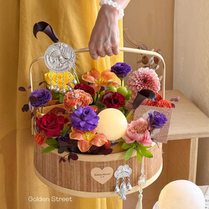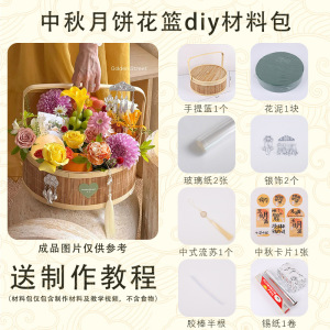 卓兰中秋节新品竹编月饼礼盒新中式手提花篮花束包装单层插花空盒