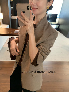 秀熙熙2025秋冬季黑标气质流苏长袖小西装外套羊毛休闲西服86087