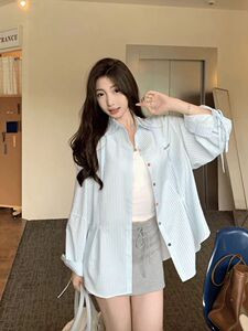 大码长袖衬衫外套女秋季新款设计感小众休闲宽松显瘦上衣洋气遮肉