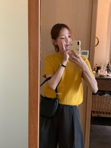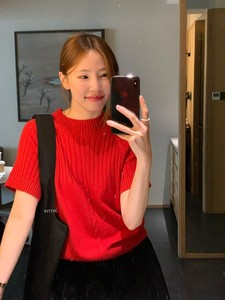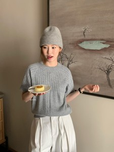 KITTIN 2025秋季韩系简约风设计感修身显瘦圆领短袖保暖毛衣P1902