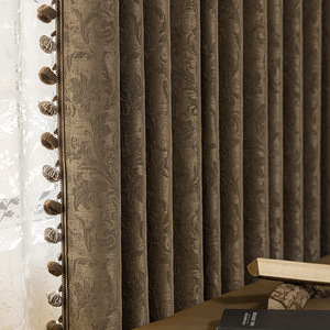 南法庄园复古绿提花雪尼尔遮光窗帘卧室法式轻奢高级感中古风窗帘