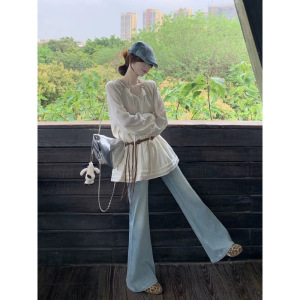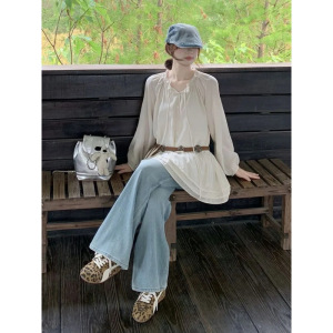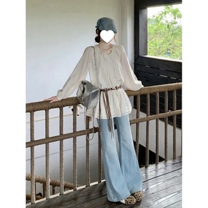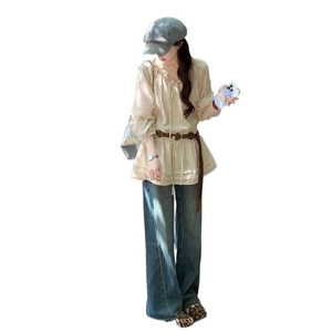 设计感木耳边花边领灯笼袖衬衫衬衣女夏季新款法式收腰上衣度假风