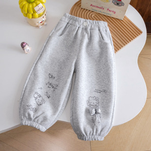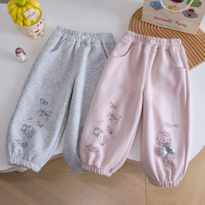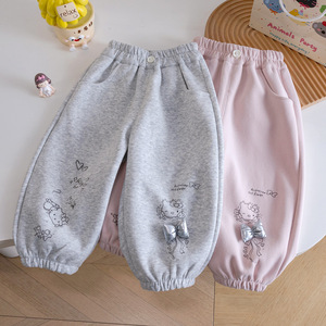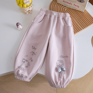 女宝宝卡通印花灯笼裤女童春秋款可爱蝴蝶结休闲裤小童秋季束脚裤
