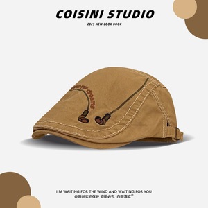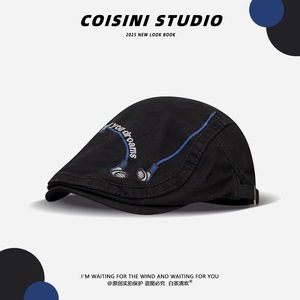 日系覆古文艺刺绣字母前进帽女春夏街头辣妹贝雷帽日韩百搭鸭舌帽