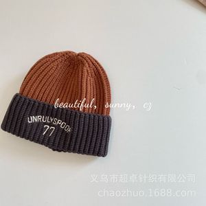 儿童帽子男童洋气拼色针织保暖冬帽女童户外毛线帽