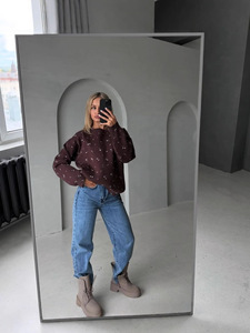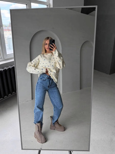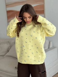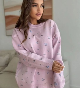 亚马逊欧美秋冬休闲圆领长袖上衣 小清新花卉设计感撞色套头毛衣