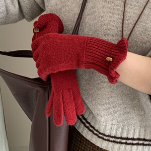 复古木耳花边针织手套25新新款高级感女士冬季保暖露指可触屏手套