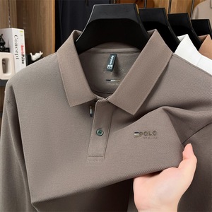 2025年秋季新款男士加肥加大码商务休闲翻领纯棉长袖T恤男胖子