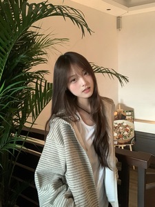 【400克重磅】美式复古条纹撞色开衫连帽薄款设计感别致显瘦外套
