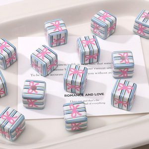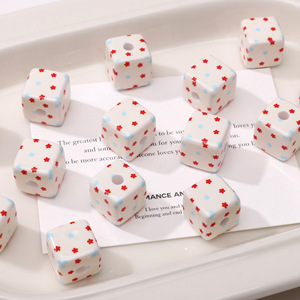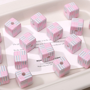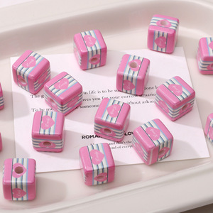 14mm亚克力印花方块珠子手工diy串珠手链钥匙扣饰品材料配件散珠