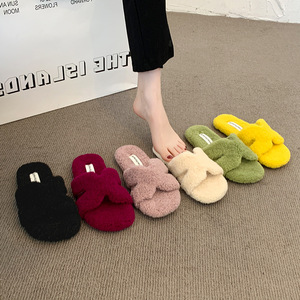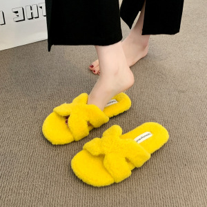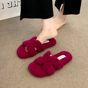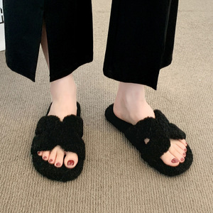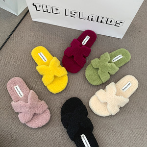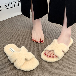 高级感软底毛毛拖鞋女外穿2025新款秋冬平底羊毛卷居家一脚蹬棉拖