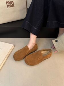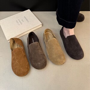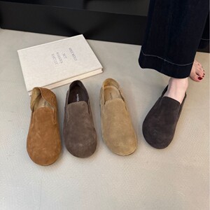 牛皮版~软底真皮单鞋一脚蹬勃肯鞋女复古圆头平底博肯鞋豆豆鞋子