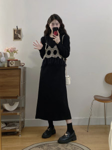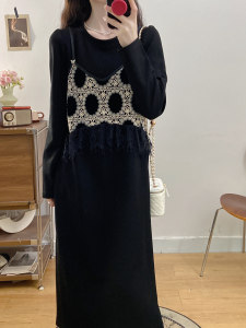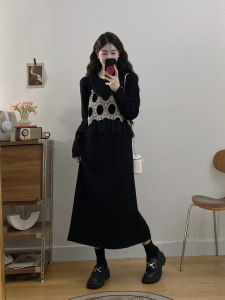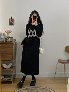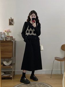 2025年秋季新款胖MM拼接蕾丝边修身显瘦气质百搭假俩件连衣裙