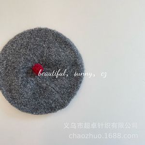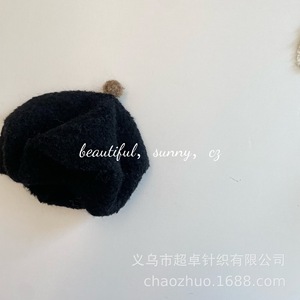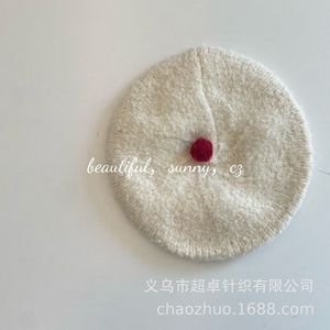 INS韩系贝雷帽儿童小球球针织时髦南瓜帽报童帽