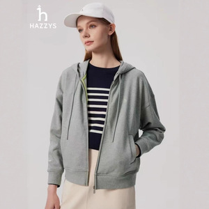 跨境 Hazzys哈吉斯连帽拉链开襟休闲卫衣外套女士运动上衣
