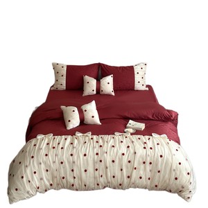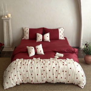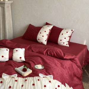 lolita风全棉长绒棉提花四件套纯棉全棉四季款蕾丝边被套床上用品