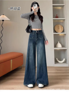 2025年新款阔腿牛仔裤女春秋季高街显瘦宽松设计感喇叭直筒裤子