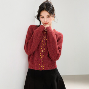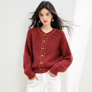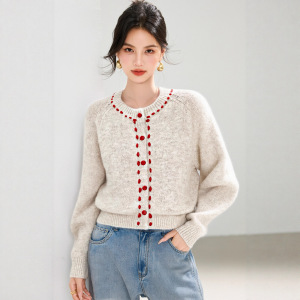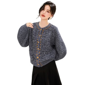 韩系宽松慵懒风单排扣圆领针织开衫女秋冬季新款软糯百搭毛衣外套