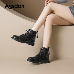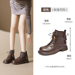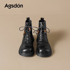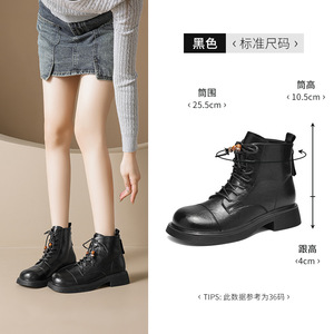 奥古狮登黑色马丁靴女2025新款秋季英伦风复古厚底短靴串珠时装靴