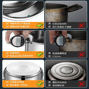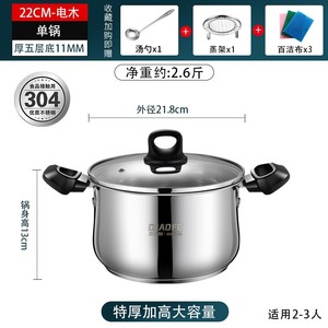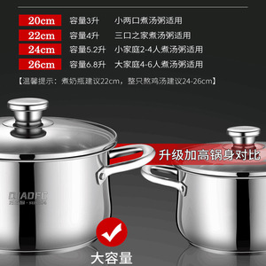 汤锅304不锈钢家用加厚不粘锅煮汤火锅专用小蒸锅电磁炉煤气灶锅