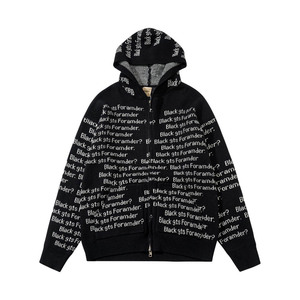 满身字母提花连帽针织衫外套欧美潮流小众宽松长袖双拉链毛衣男士