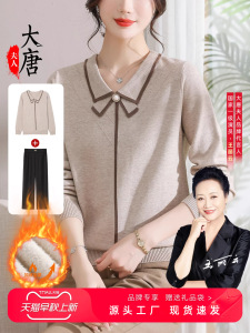 中年妈妈秋装洋气针织衫上衣2025新款中老年女装春秋时尚打底小衫