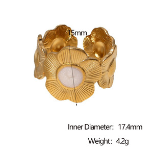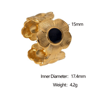 跨境热销不锈钢菊花戒指法式轻奢风18k金不褪色钛钢指环手饰批发