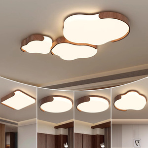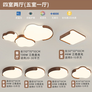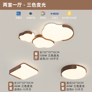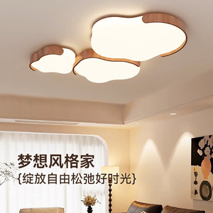 全光谱客厅主灯大气奶油风中古风胡桃木纹主卧室灯创意云朵吸顶灯