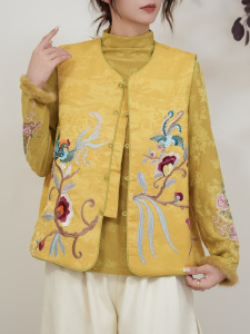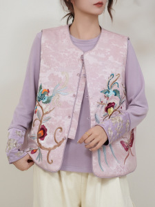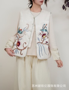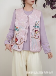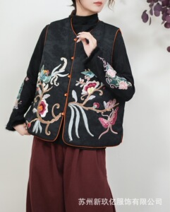 2025秋季新款民族风复古圆领马甲女文艺时尚提花重工刺绣宽松背心