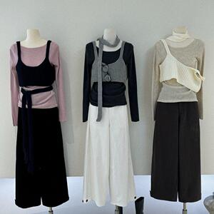 韩系纯色粗线背心针织上衣女两件套2025秋季新款套装