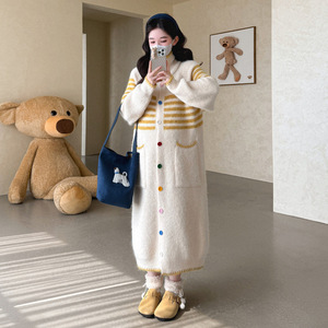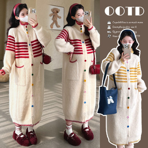 现货2025秋冬孕妇裙彩色扣子孕妈宽松针织长款孕妇连衣裙
