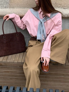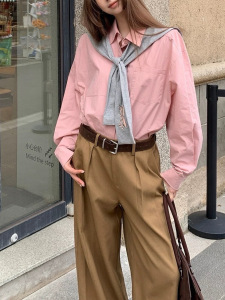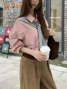 粉色衬衫女早秋女装2025新款法式小资上衣高级独特别致衬衣