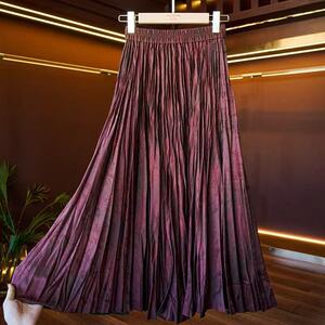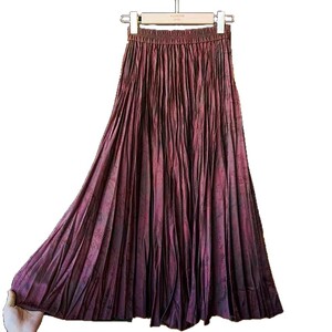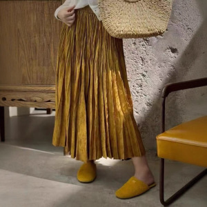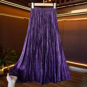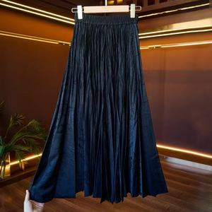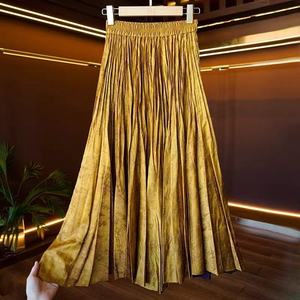 新中式百搭休闲百褶裙半身裙女松紧高腰褶皱A字伞裙暗纹提花半裙