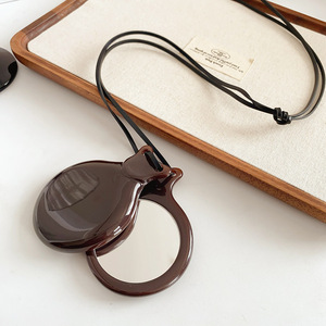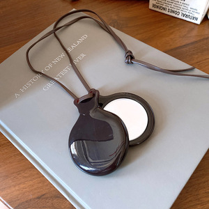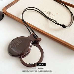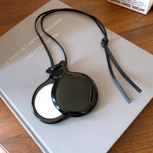皮革挂绳镜子项链长款吊坠时尚休闲毛衣链小众高级感秋冬配饰