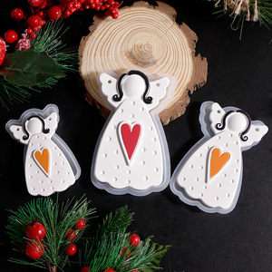 圣诞爱心天使挂牌模具大小翅膀波点天使圣诞石膏香薰挂件硅胶模具