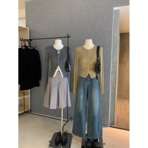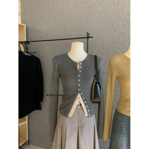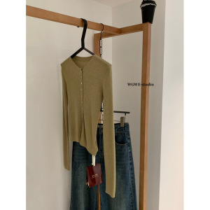 塞纳WGWE7090韩系外搭修身打底针织开衫气质显瘦小众百搭长袖上衣