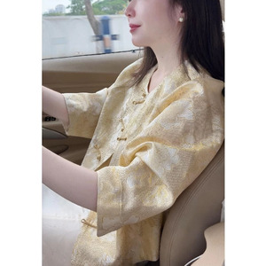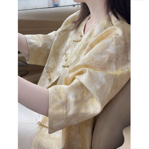 国风女装气质高端上衣早秋轻奢高级感超好看新中式黄色提花短外套